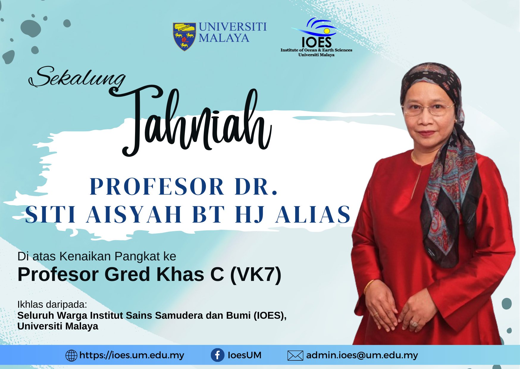 | Description__ | Setinggi-tinggi tahniah diucapkan kepada Profesor Dr. Siti Aisyah bt Hj Alias, Timbalan Pengarah Eksekutif IOES di atas kenaikan pangkat ke Profesor Gred Khas C (VK7) | |